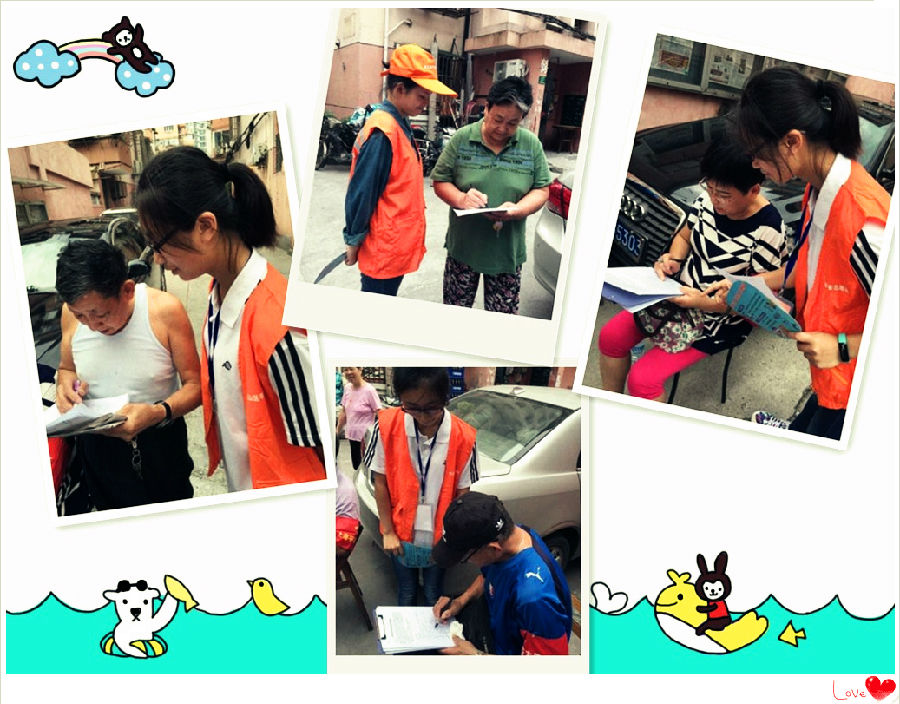 下午一点,同学们整装待发。分别前往宝山的各个小区街道,对当地居民进行社区安全感满意度的调查问卷活动。