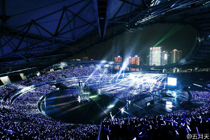 十一假期的第四天,拿着用奖学金买来的演唱会门票,怀抱着激动的心情,来到了上海八万人体育场。开场的是宇宙人,当宇宙人带领着全场唱一起去跑步的时候,很多五迷都在喊五月天的名字,当时特别憧憬又期待着五月天会以什么样的方式出场,第一首歌又会是什么。当Do you ever shine前奏响起,全场气氛一瞬间就嗨起来,八万人挥动手中的荧光棒跟着五月天一起唱,满脑子就只想着和五月天还有全场那么多五迷一起“Just Rock It”!最后终究是在没有告别的画面里,看到了五月天离开的背影,恋爱ING是最好的序幕,五月天用心用爱为我们演绎了一场“后青春期的诗”!有人说,看五月天演唱会是为了圆自己一个青春梦。而正值青春最美年华的我们,看五月天的演唱会,我想一定是为了用正能量来激励更好的青春!