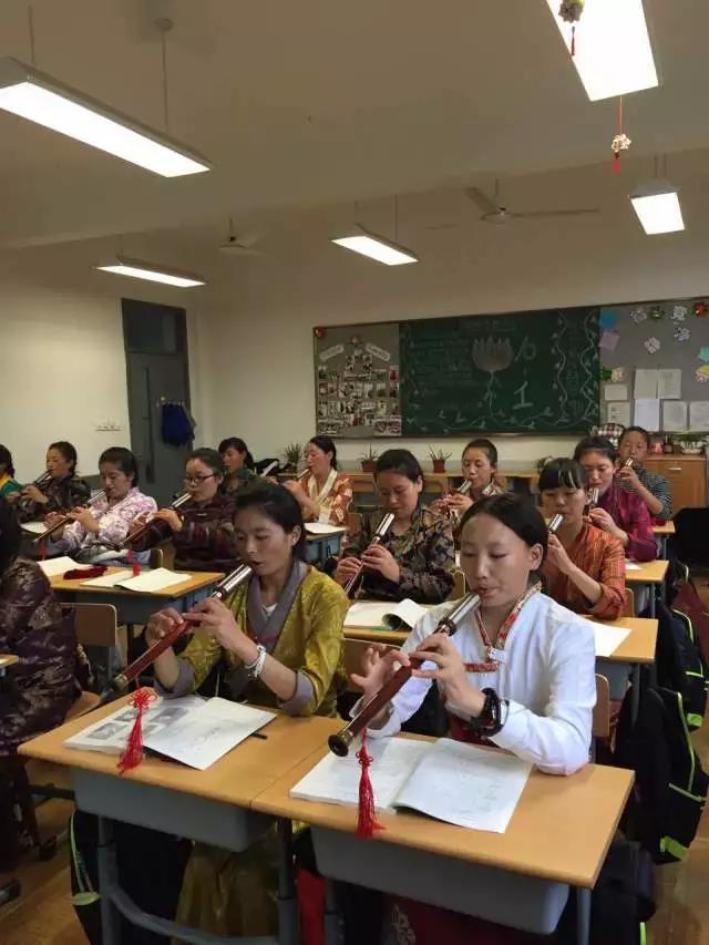 看!藏族姑娘们的认真劲,她们对这样民族乐器充满了兴趣,非常珍惜这样一次难得的学习机会。期待在5次学习后,我们的姑娘可以用巴乌吹奏一首简单的曲子。让巴乌可以打开她们对乐器学习的新天地!