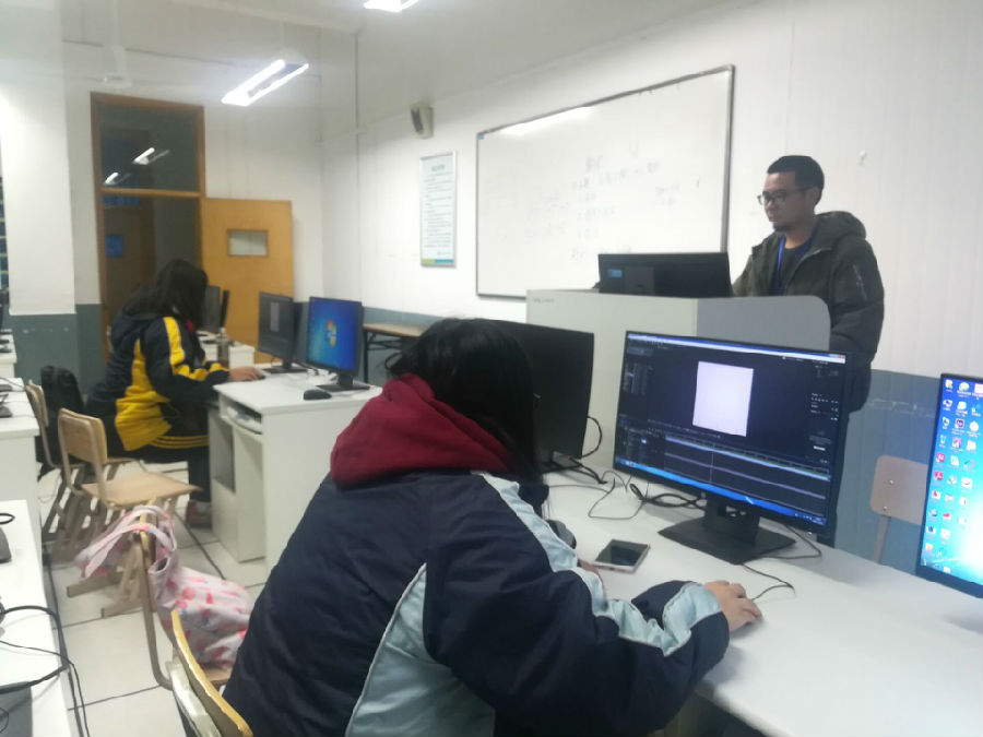 Ae动画社的指导老师由我校超级厉害的鲍老师担任。走进机房打开“Ae”小编当时就特别惊讶,这是一个全英文的软件。当时心想,我又没软件教程,还不太会英语,这下怎么办呀。怀着忧心忡忡的心情开始听老师的讲解,老师先介绍了我们这节课要做的东西,然后逐步演示。在老师在示范的时候,小编也赶紧认真做笔记。老师讲的很细致,有较为困难的地方也会和我们着重强调。小编回忆老师的示范并参照自己的笔记,不一会儿就做出动画特效了,而且和样本几乎没什么差别。