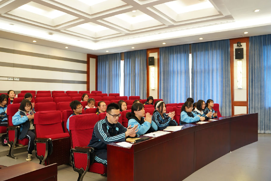 校领导与同学们一起开会