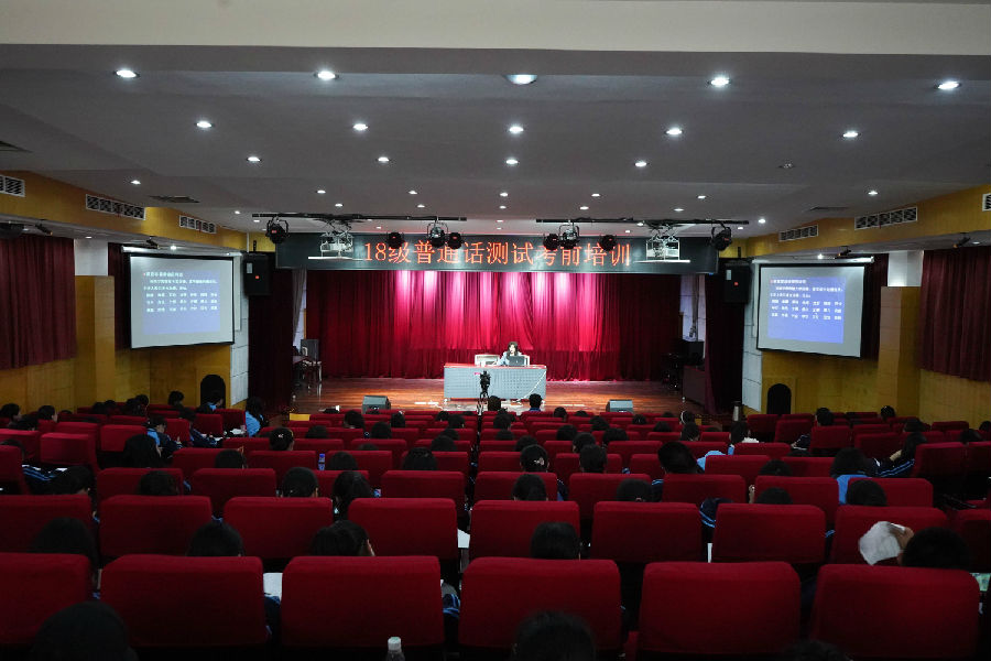 2018年4月19日我校在阶梯教室举行了18届中高职同学的普通话考试的讲座。有幸的请来了专业的老师为我们进行考试前的培训。