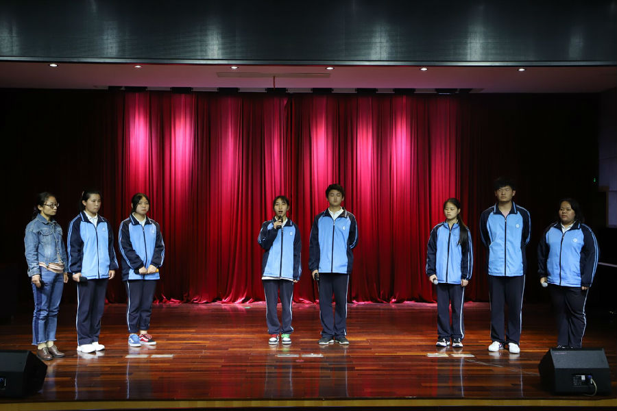 而恰当好处的背景音乐和动作,更将朗语与表演融为一体,赢得了在场老师和学生的阵阵掌声。