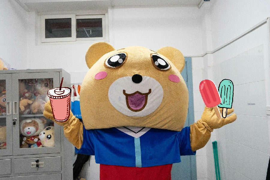 没办法!只好外力降温了!熊熊熊跑到小卖部买了大量冰淇淋和冰饮料。