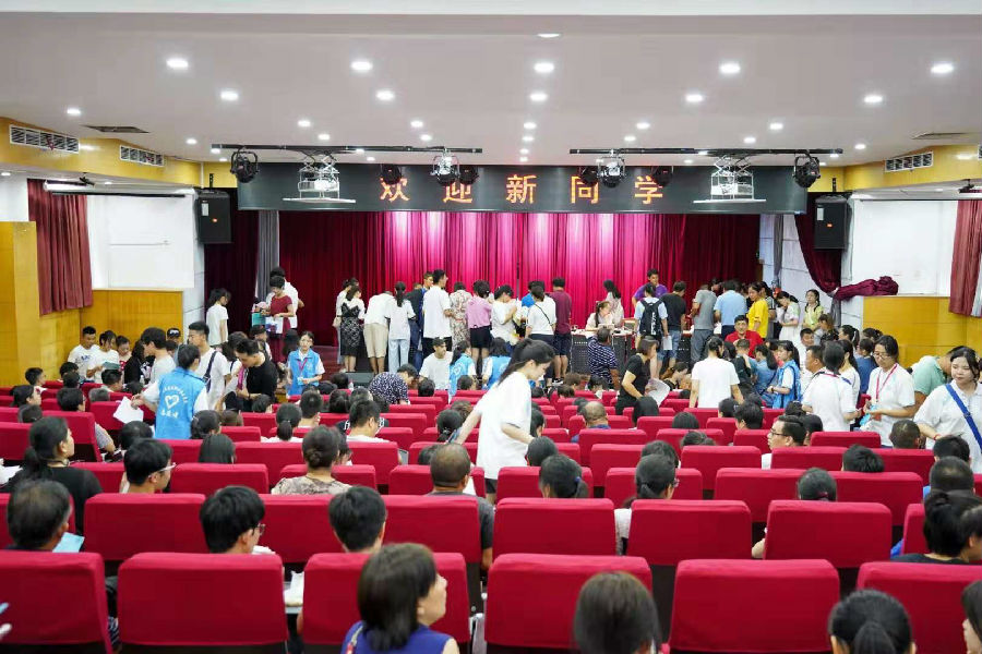 新生报到场地位于我校图书馆三楼,新生须在老师与学生工作人员指导下,仔细填报各类重要表格并缴纳学费。在新生报名等待过程中,我校易班成员会为在场的家长解答关于入学相关信息,同时下发我校易班工作站站内成员自制的宣传折页,令更多家长与同学对于我校教学环境与我校特色学生组织易班工作站有初步的了解。