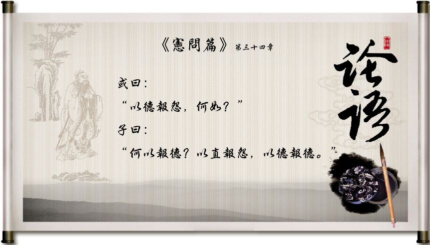 在阅读完论语之后,令我印象最深刻的还是“宪问篇第十四″中的“以直报怨″或曰:“以德报怨,何如?”子曰:“何以报德?以直报怨,以德报德。”它的译文是:有人说:“用恩德来回报怨恨怎么样?”孔子说:“用什么来回报恩德呢?用正直来回报怨恨,用恩德来回报恩德。”在这里,孔子强调的是“以直报怨”。