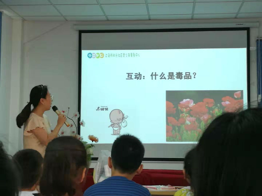 待到活动开始时间,先有居委干部朱老师致本次活动的开幕词,借此向大家介绍新的老师--本区青少年活动指导委员。为提高广“大青少年拒毒防毒的意识,特请这位老师为我们上一-堂禁毒宣传的课堂。
