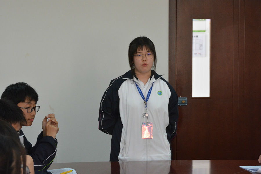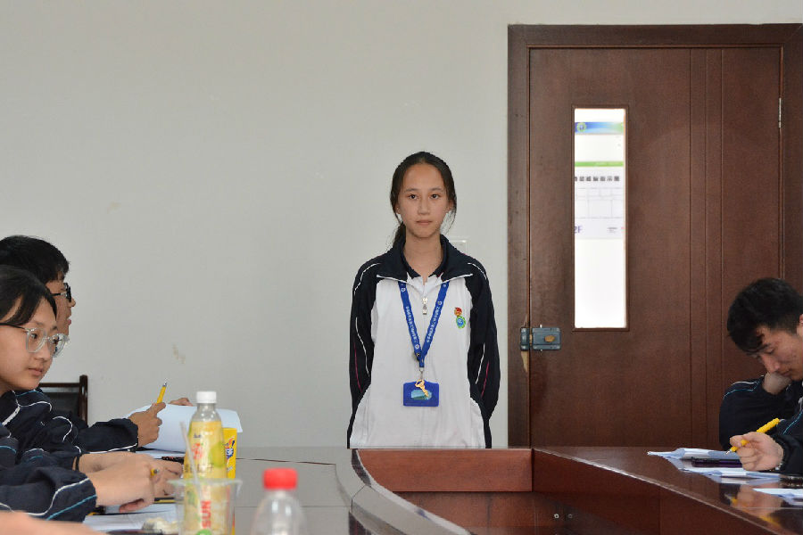 应聘社团管理部部长的沈禹熙同学亮眼的表现也让大家对她表示肯定,针对社团管理部部长唐凯同学提出的问题:如果两个社团同时要使用同一个场地,你该如何处理?她表示:在现场进行一定的交流沟通,直到问题解决,并提前安排核对社团的时间表,以防这种情况发生。