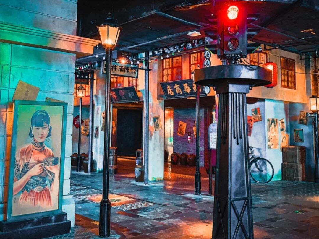 五彩的灯笼饰顶,老上海时代的有轨电 车,船坞码头,霓虹灯石库门,米袋仓库黄包车,还有“复兴号轮船”地道的老字号小吃汇集,就连厕所也相当的特别,真实打造老上海风情的“不夜城”,随处可见的老上海风格的弄堂和店铺让人走在其中仿佛时光倒流一般,你会经常看到穿着旗袍的小姐姐们来打卡,当然也有很多热情高涨的阿姨来这里追忆曾经的似水年华。