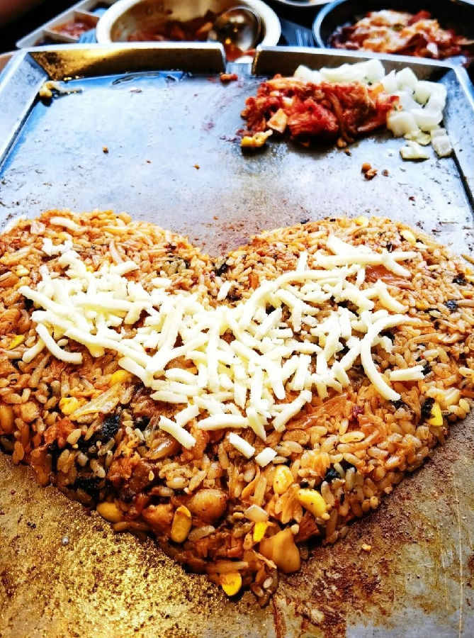 菜单上的菜品琳琅满目,有经典的烤五花肉,烤梅花肉,芝士系列的产品也都不错。还有特色的大金炒饭!还有脆脆的烤猪皮!烤肉沾上酱料怎样都吃不腻。