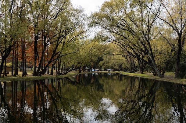 每年深秋是上海共青森林公园最美的时节,在冷风里,翠绿的杉树叶开始逐渐变黄、变红。绣红色的杉树林在阳光的照射下,将公园景色妆扮得光彩夺目。