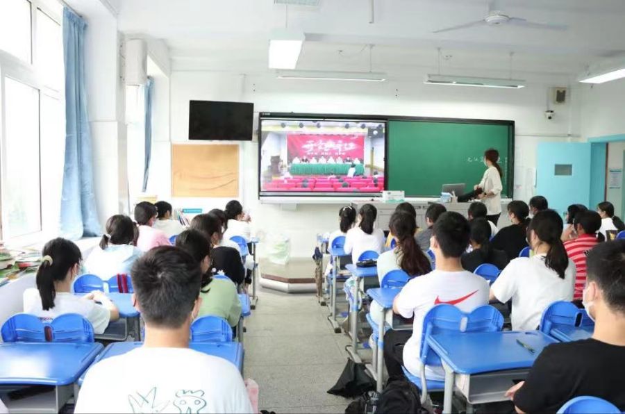 鉴于疫情防护,进入我校,需出示24小时健康码,并且测量体温。进入报告厅需佩戴口罩,隔开入座。我校以线上线下同时进行网络直播的形式举办本次典礼,部分新生于图书馆报告厅现场参与。