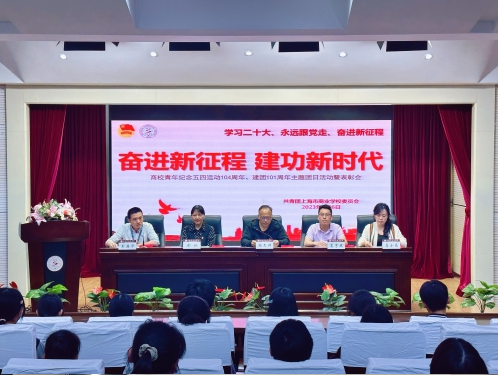 在习近平中国特色社会主义思想指引下,为表彰我校“青年示范群体”,树立典范,发挥先进的模范带头作用,激励广大商校学子奋发向上、争先创优的精神风貌2023年5月6日中午12点校学生处团委崇文楼二阶梯教室举行奋进新征程 建功新时代”纪念五四运动104周年、建团101周年主题团日活动暨表彰会。校党委副书记、副校长鞠文炜出席会议并讲话,学生处主任俞炯、各教学部书记及学生处的老师们应邀出席,各班班长团支书、受表彰的先进集体代表、先进个人等参与此次活动,本次活动学生处副主任兼团委书记吴海华老师主持。