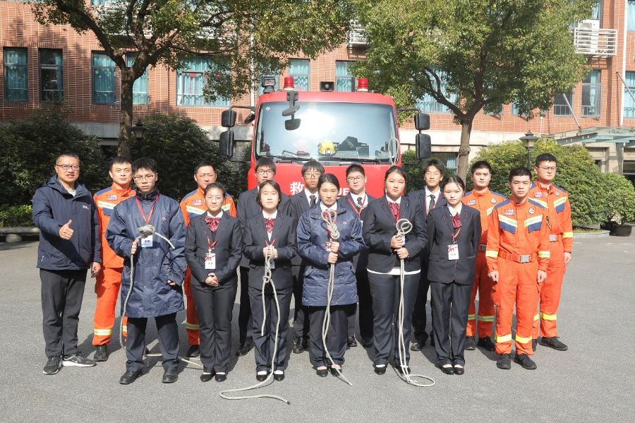 此次紧急疏散安全演练特邀上海市消防总队黄浦支队北京中队和潍坊消防救援站的消防员们进校园。演练前,消防员首先向大家介绍了火灾的危害性、家庭和单位的火灾隐患排查方法、常见火灾逃生方式和灭火器材操作等方面的知识。演练后,同学们还向消防员学习了灭火器、安全绳的使用,在实践操作中加深了对消防器材的了解,提高了自我防护的安全意识。
