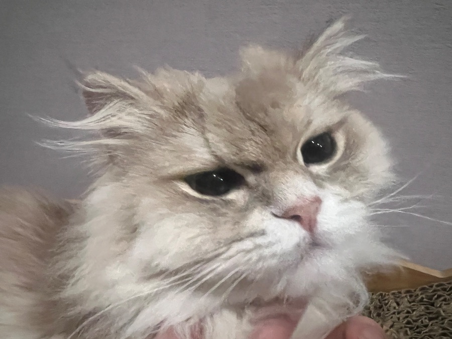 这只毛发蓬松柔软的长毛猫,自带一种慵懒又傲娇的气质。浅金与奶白交织的被毛,在光线下泛着温柔的光泽,耳尖的碎毛微微翘起,像精心打理过的小呆毛,平添几分俏皮。它微微眯起的黑眸里藏着疏离感,粉粉的鼻头却又透着软萌,明明是一副“生人勿近”的酷拽表情,却让人忍不住想rua一把。