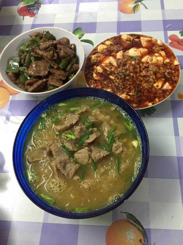 嘻嘻,最熟悉的味道当然时爸爸的味道啦。在我家,爸爸每次都会烧好多好吃的。牛肉粉丝汤是我最爱吃的啦~\(≧▽≦)/~再加上葱,香味扑鼻而来丫!!还有麻辣豆腐,尽管有时候老爸放的辣有点多了  还有老爸炒的青椒也蛮好吃的